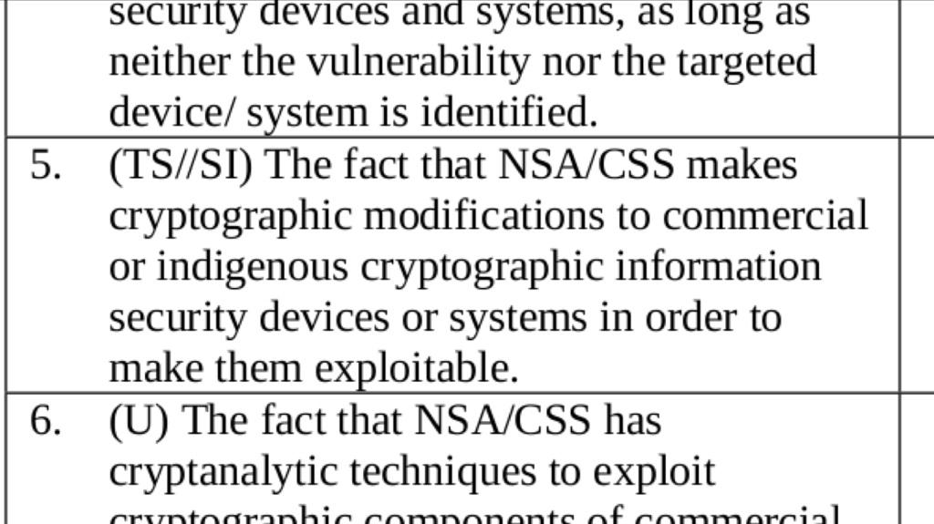 Additionally something like an effective attack against AES, RSA, or any other major encryption standard will probably be so compartmentalized that it won't even have a code word.
